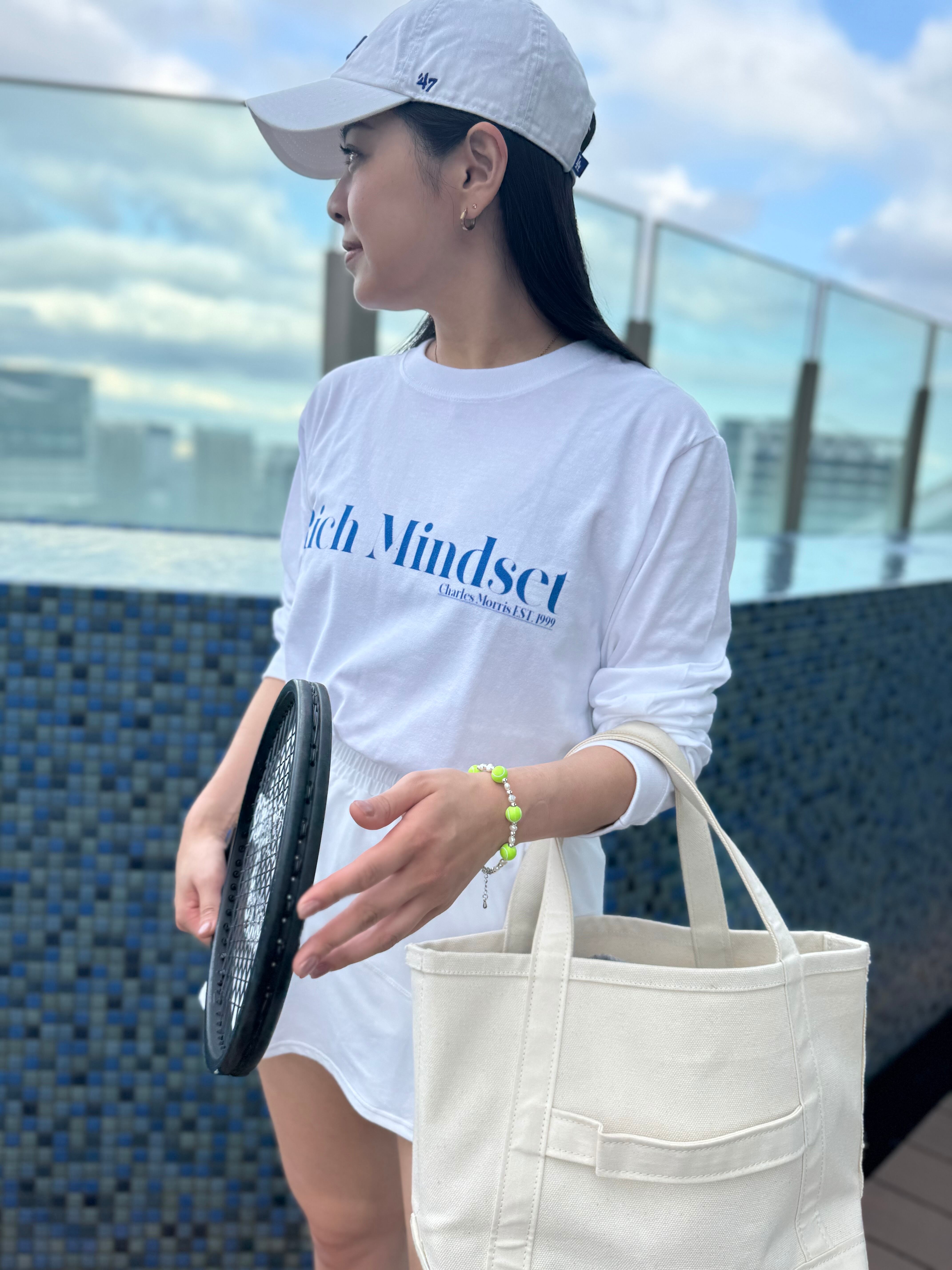 テニスボール×パールのブレスレットです。スポーツの際やテニス観戦の際のワンポイントにいかがですか?